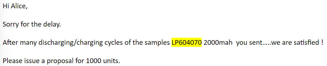 | 6 | Standard -Lademethode | 0,5 ° C (konstanter Strom) Ladung auf 4,2 V, dann CV (konstante Spannung 4,2 V) Ladung bis zum Ladungsstrom Abnahme auf ≤ 0,05 ° C |